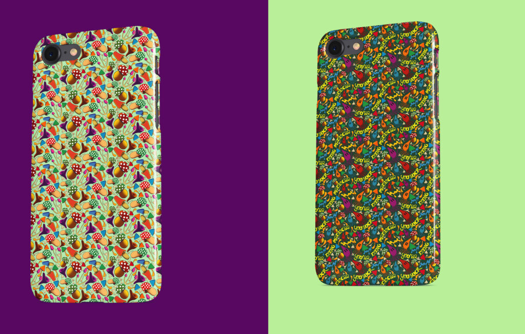 After I had my patterns set I looked for mock-ups to apply my pattern to. I decided to put my patterns on a bedspread, socks, and a phone case. (After doing the patterns and putting them onto a mock-up – I STRONGLY suggest that you build your pattern in Illustrator on the Art Board size of the mock-up)